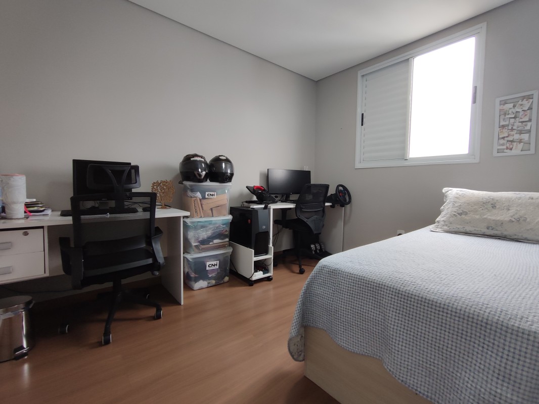 2 quartos sendo 1 suíte com armário planejado e janelas com venezianas,