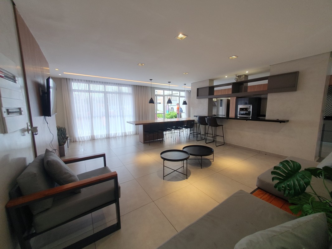 Piscina, quadra de esportes, salão de festas, espaço gourmet, sauna, academia.