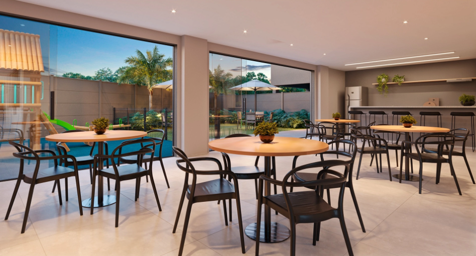 As áreas comuns são entregues montadas e mobiliadas, prontas para uso imediato, o que agrega valor e praticidade ao dia a dia dos moradores.