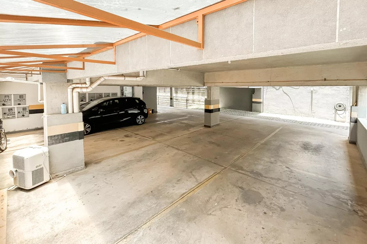 2 vagas de garagem em linha, cobertas.