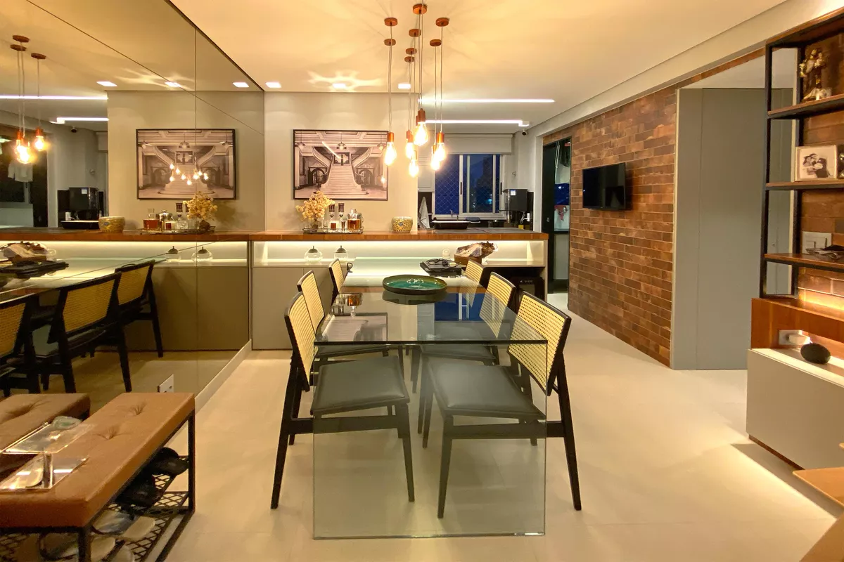 Apartamento com área de 90m², sala ampla para 02 ambientes toda decorada, com piso em porcelanato e teto com rebaixamento em gesso, lavabo, 03 quartos amplos, todos com piso em vinílico de madeira e armários, sendo 01 suíte com espelho, bancada em granito, armários e box em blindex, banheiro social com espelho, bancada em granito, armários e box em blindex, cozinha espaçosa com piso em porcelanato, armários planejados e coifa, área de serviço com tanque e armários.