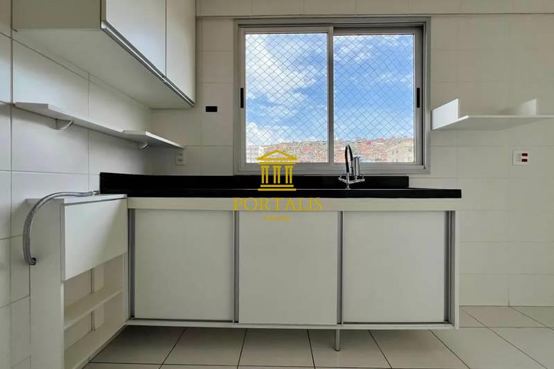 * Cozinha espaçosa com piso em cerâmica, bancada em granito e armários.