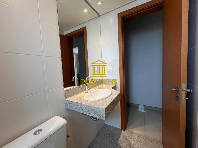 Na área íntima, são 3 quartos, sendo 1 suíte, com janelas com venezianas. O imóvel conta ainda com 3 banheiros e 1 lavabo.