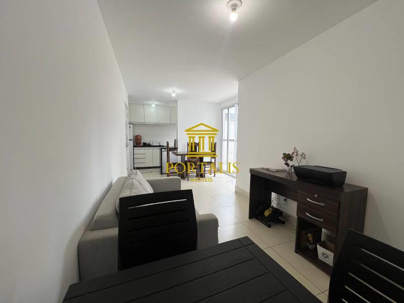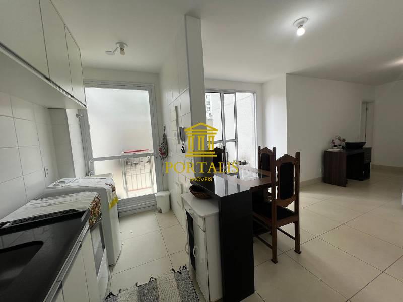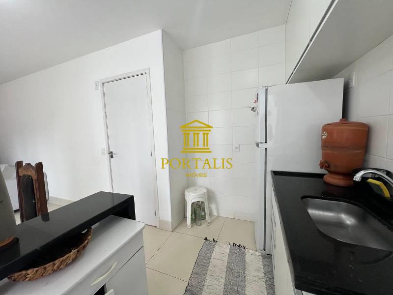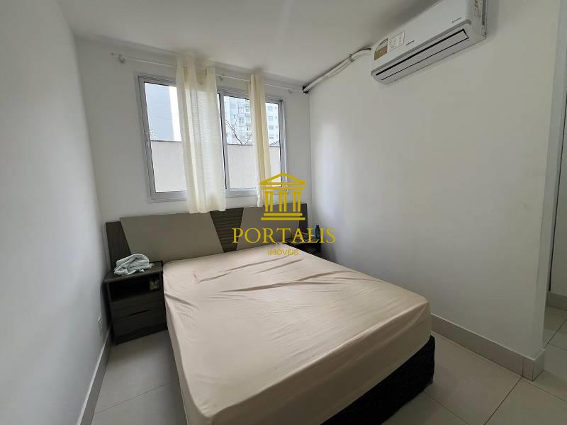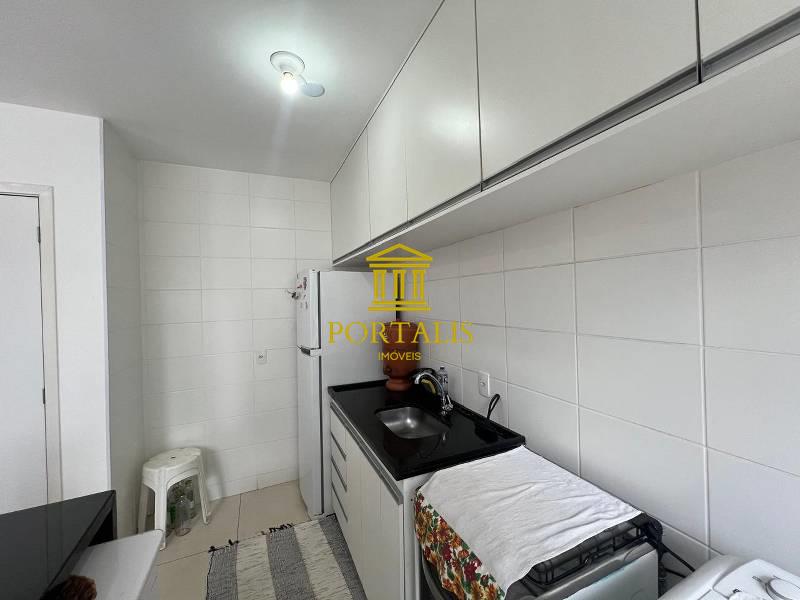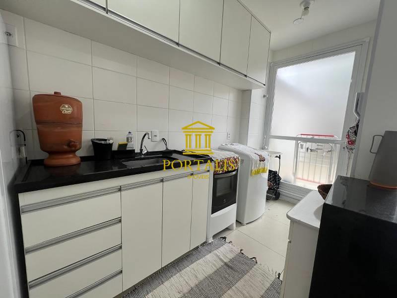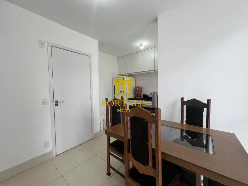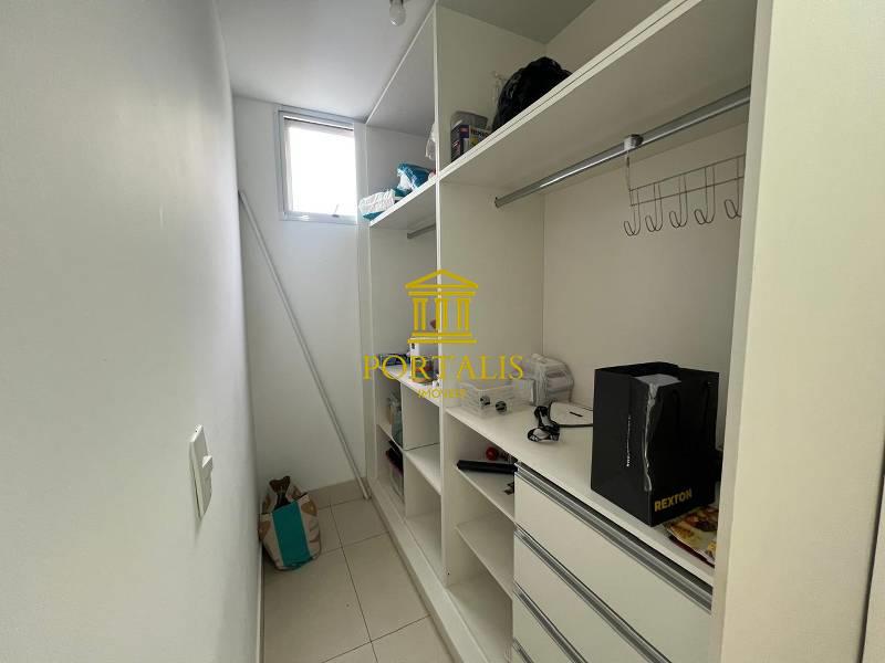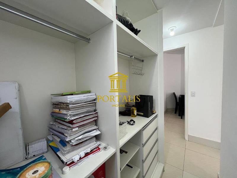 A área social conta com sala, cozinha americana com armários planejados, área de serviço e varanda. Possui ar-condicionado. O banheiro da suíte tem armário e box.