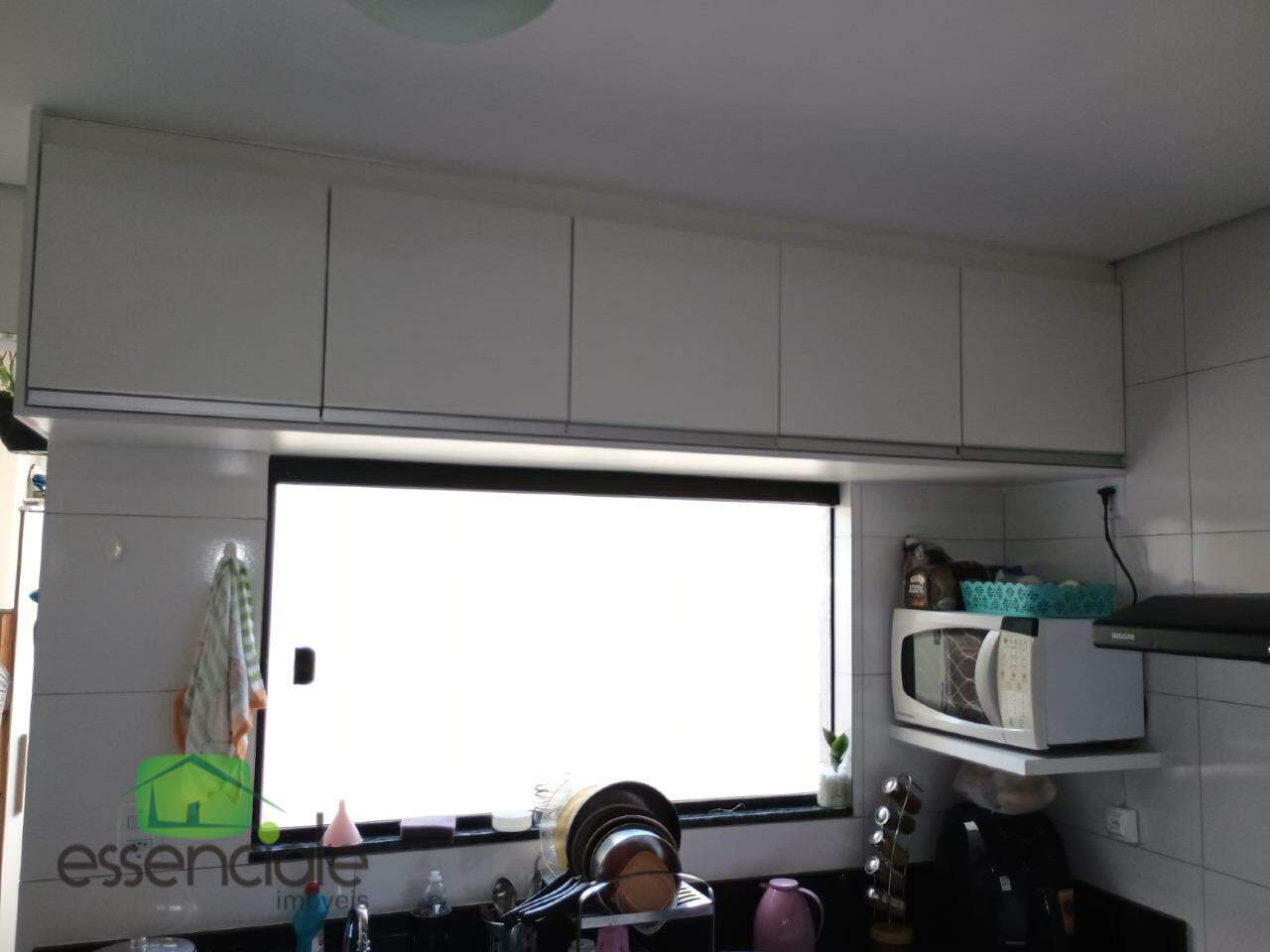 01 banho social com Box em vidro temperado e armário sob a pia.