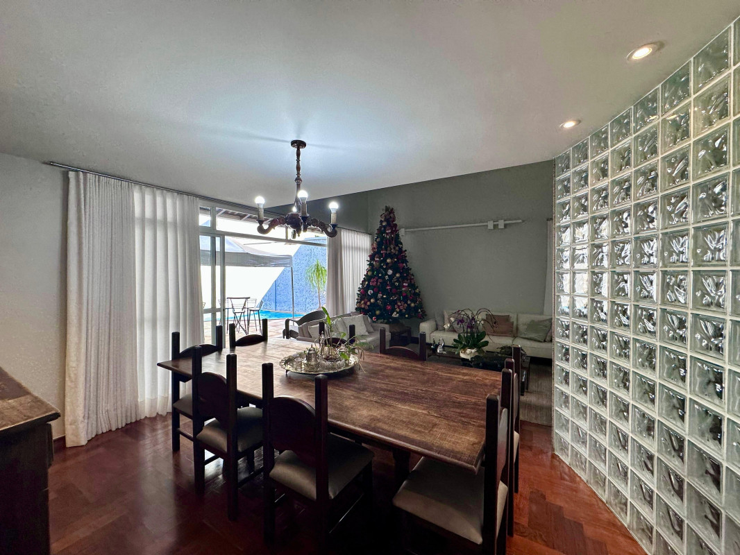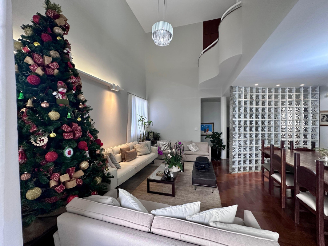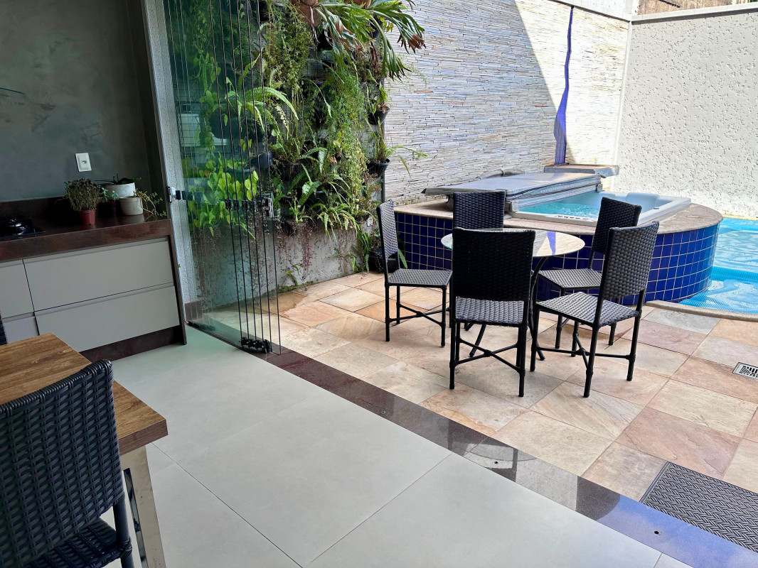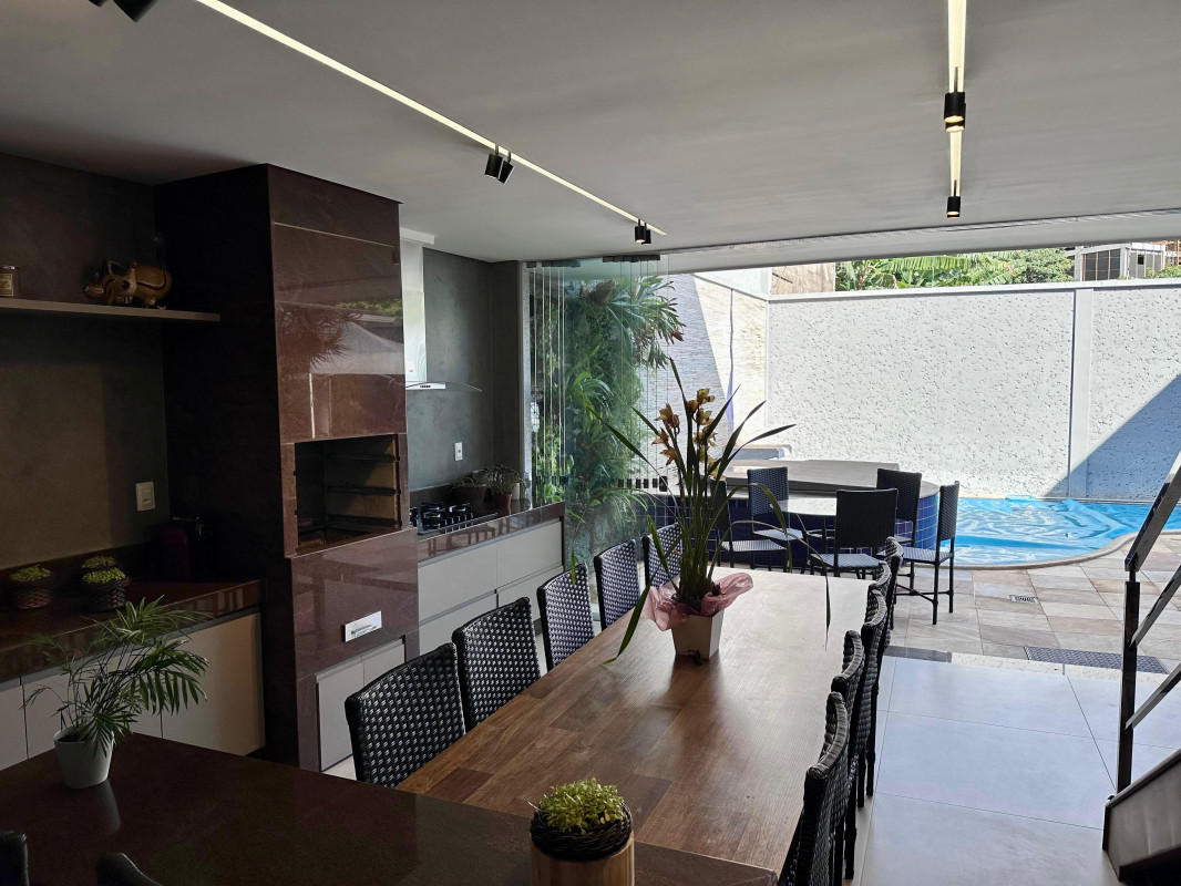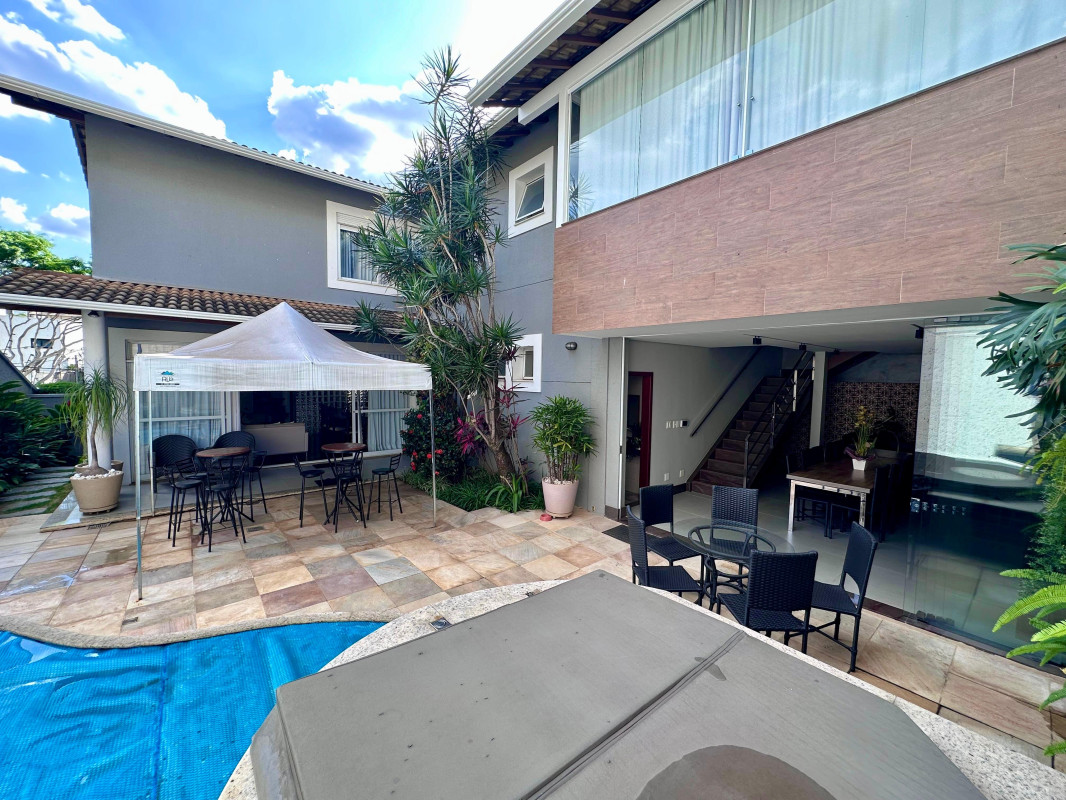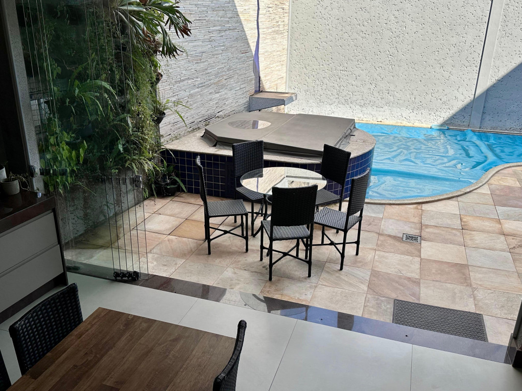 Com 2 vagas cobertas e 2 descobertas na garagem, você terá espaço de sobra para estacionar seus veículos. A casa conta com 1 suíte ampla com closet, 2 semissuítes, 1 mezanino, sala de estar íntimo, sala de visita e jantar com 50m2, cozinha, despensa, área de serviço, DPE completa, escritório, lavabo, varanda, piscina, spa, espaço gourmet, banheiro completo de apoio ao lazer, sala de home theater com 34 m2, jardim e muita vegetação exuberante e 4 vagas 2 cobertas e 2 descobertas.