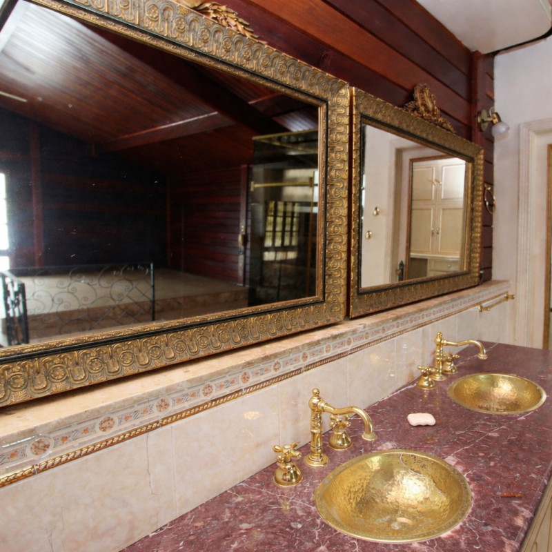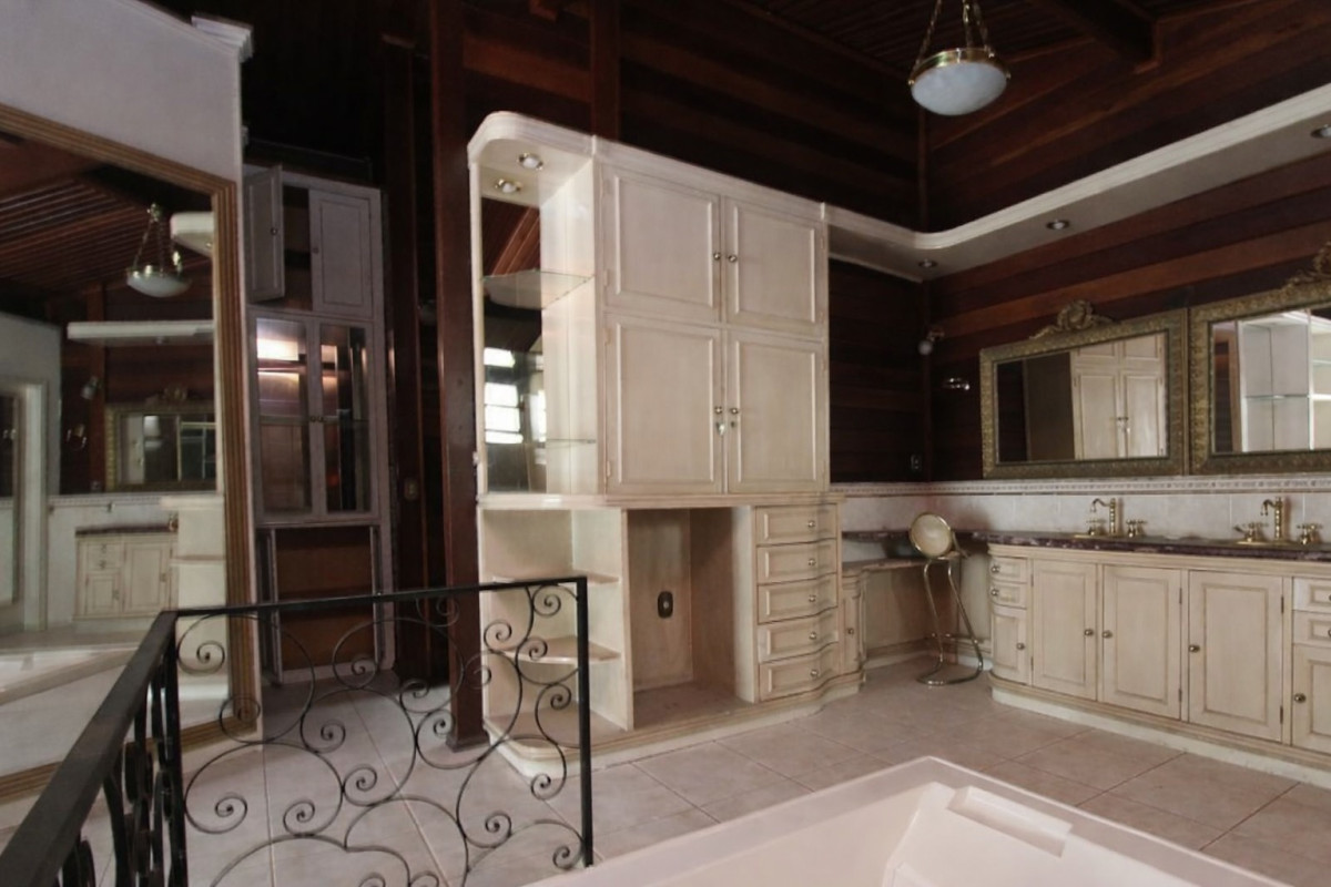 2º Pavimento: Escadaria em granito no hall de entrada, com corrimão dourado e grades em prata em estilo francês, dando acesso à garagem. Despensa. Lavanderia completa, com quarto e banheiro para funcionários, equipada com instalações sanitárias e de cozinha com peças Deca. Garagem coberta para 02 veículos.