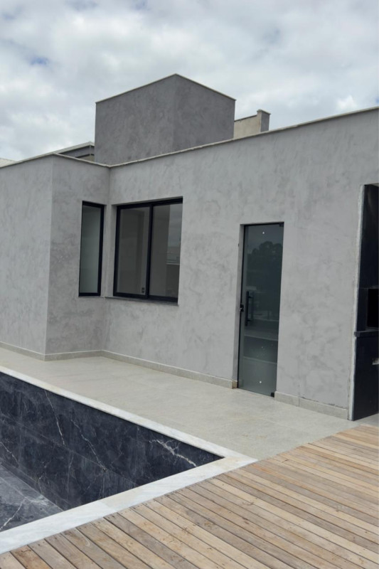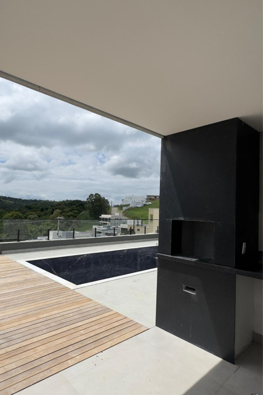 A área externa é um dos grandes diferenciais, feita com deck em madeira e com uma maravilhosa vista para natureza. Possui quintal gramado e uma excelente área gourmet coberta, equipada com churrasqueira, bancada, banheiro, espaço ideal para receber amigos e familiares. Possui uma grande piscina revestida com porcelanato.