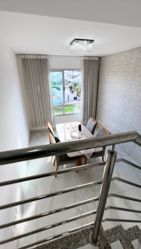 São 02 salas amplas e arejadas sendo 01 sala de jantar com vista definitiva, salão para eventos com banheiro, Cozinha e área de serviço com bancada em granito, amplo quintal, banho social 100 % revestido e box blindex, 03 dormitórios sendo um suíte, e com varanda todos com piso em laminado, amplo terraço com vista definitiva para o condomínio Estância Silveira e duas vagas de garagem paralelas.