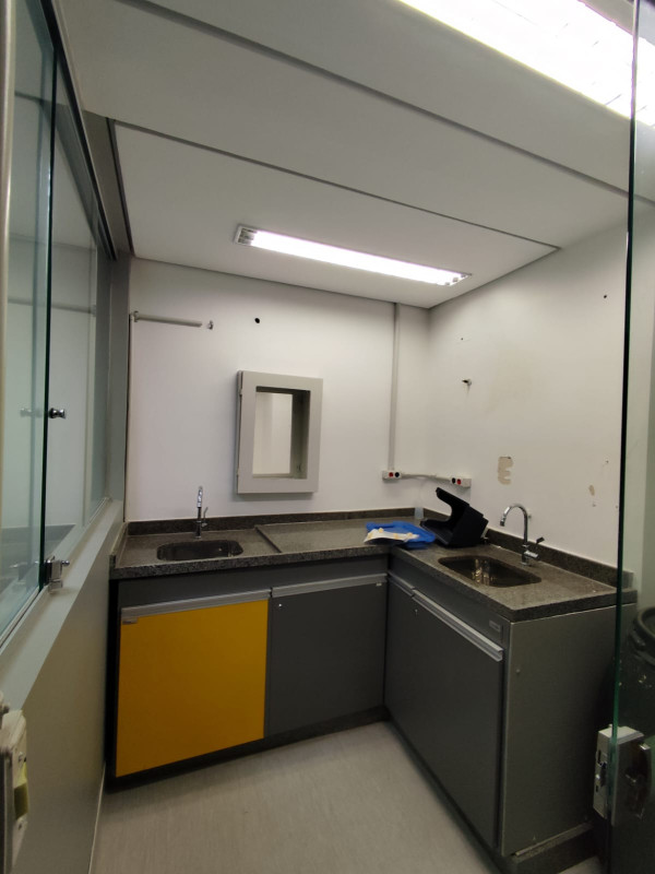 1º nível: Recepção, 3 salas, copa com armário sob bancada em granito, lavanderia, banho comunitário e fraldário.